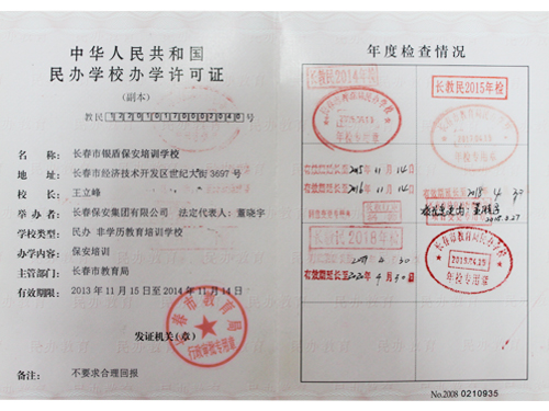 銀盾保安培訓(xùn)學(xué)校辦學(xué)許可證