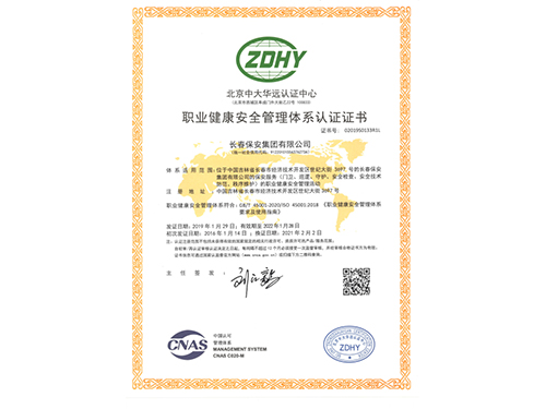 職業(yè)健康安全管理體系認(rèn)證證書(shū)