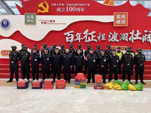 在吉林大學第三醫(yī)院,慰問組對所有堅守崗位的保安員們送上春節(jié)的慰問和敬意。于總認真聽取了駐勤保安隊長對崗點春節(jié)期間人員配備、應急預案等具體工作的情況匯報。于總強調(diào),春節(jié)期間,醫(yī)護工作者依然堅守在工作崗位上,守護著人民群眾的生命健康與安全,我們更要做到毫不放松、嚴之再嚴、細之再細,與醫(yī)院攜手并肩,以銅墻鐵壁之堅保障醫(yī)院平安。